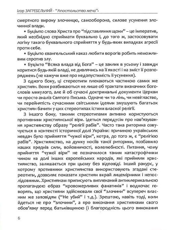 Книга «Апостольство меча» руйнує численні стереотипи щодо християнського ставлення до питань війни, революції та інших випадків застосування сили, аналізує витоки псевдохристиянського пацифізму, піднімає тему християнського підходу до володіння зброєю.⠀
