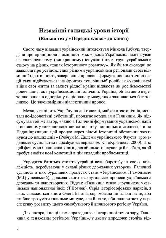 Книга складається із серії студій та есе, які цілісно формують монографічне дослідження специфіки галицької ідентичності та культурної свідомості.