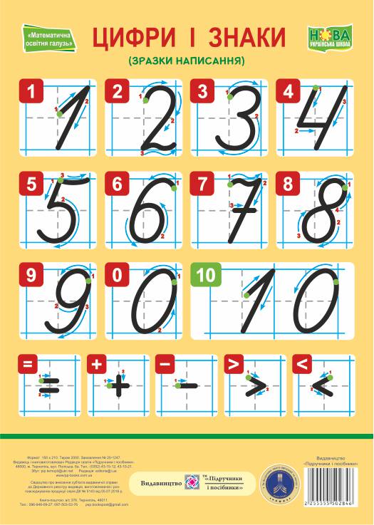 Плакат “Цифри і знаки. Зразки написання” (А5)