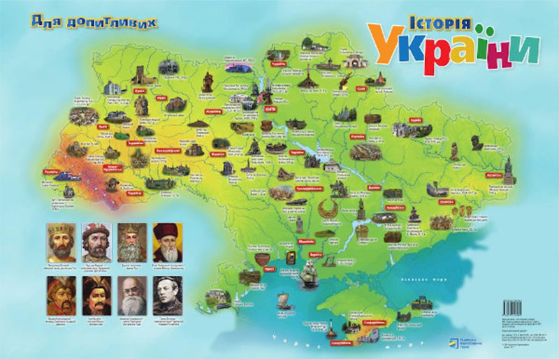 На карті подані столиця і всі обласні центри. Яскравими малюнками, у доступній наочній формі, показано природу, господарську діяльність, історико-культурні та природозаповідні об’єкти, визначні місця тощо. Карта знайомить дітей з нашою країною загалом та особливостями її окремих регіонів.